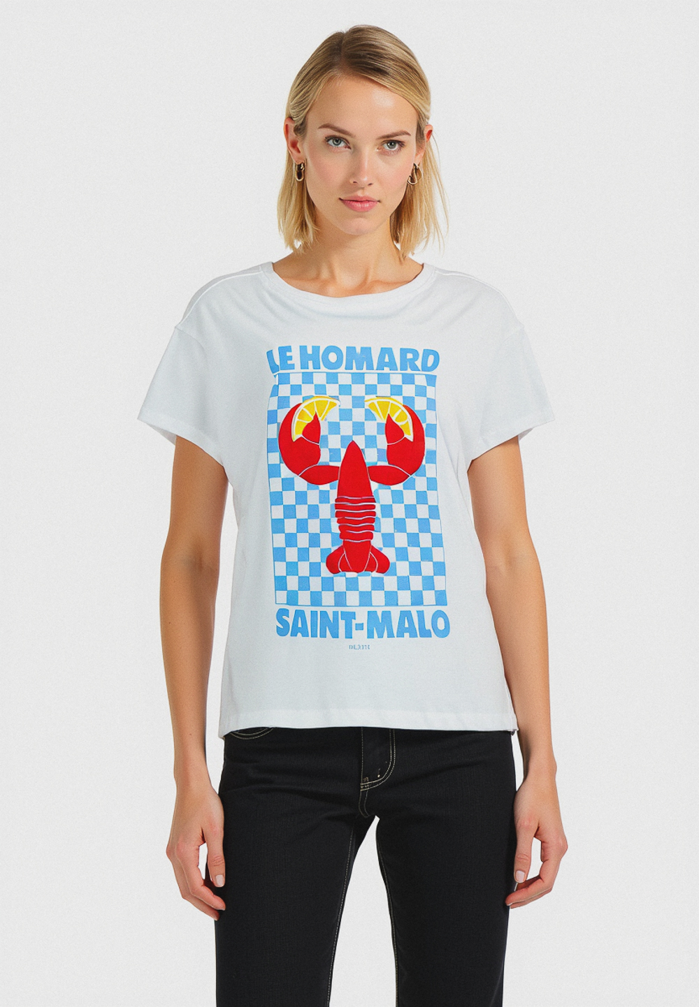 Remera manga corta de algodon, chest print, estampado, holgado y cuello redondo