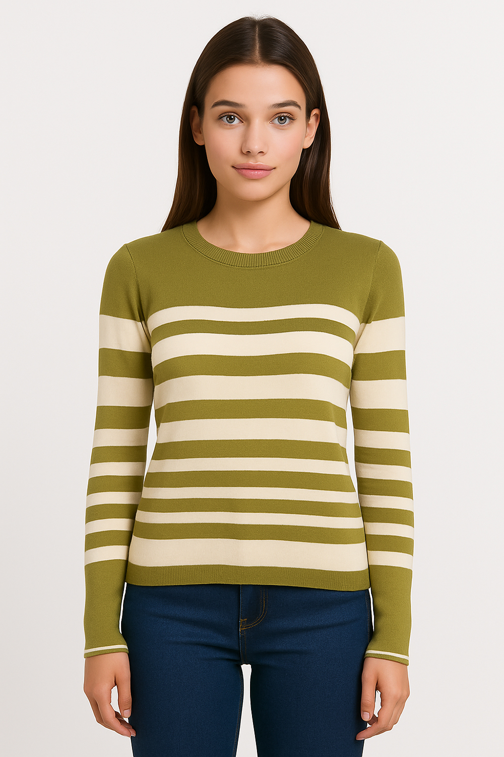 Sweater viscosa, rayas, al cuerpo y cuello a la base
