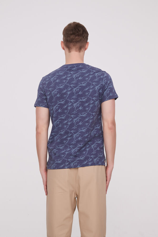 Remera manga corta de algodon, estampado, holgado y cuello a la base