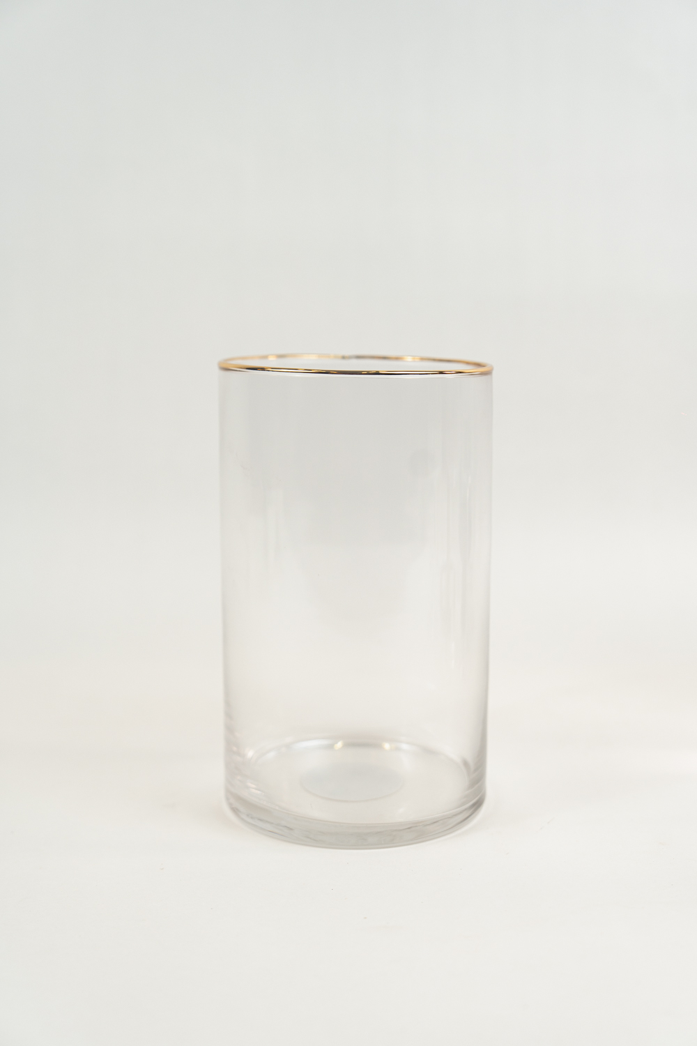 Florero Rosin Borde dorado de vidrio. Alto: 20 cm. Diámetro 12 cm.