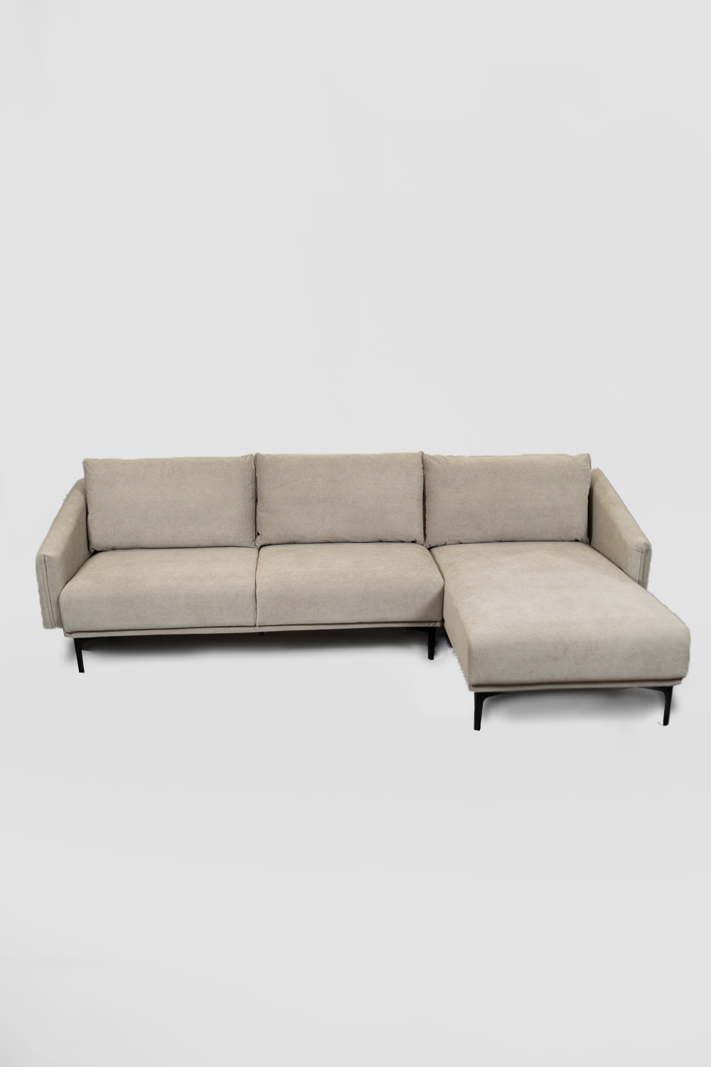 Sofá 3 cuerpos con Chaise Taupe claro Estructura de Eucaliptus + espuma de alta densidad + Resortes+ patas de hierro 18 cm Tela: 100% Poliéster