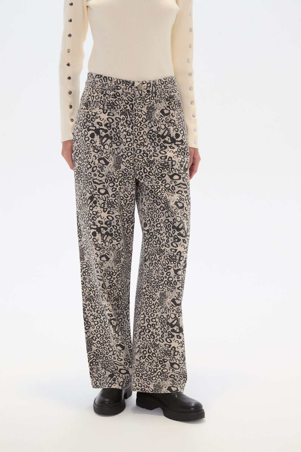 Pantalon algodon, bolsillos, estampado, ancho y de calce alto