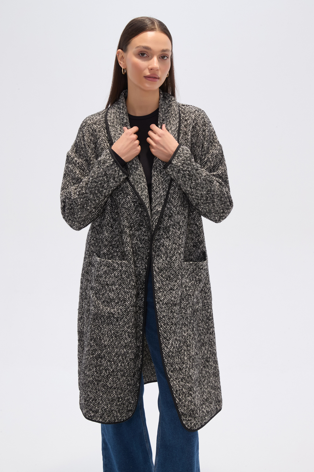 Tapado manga larga de poliester, bolsillos y vivos