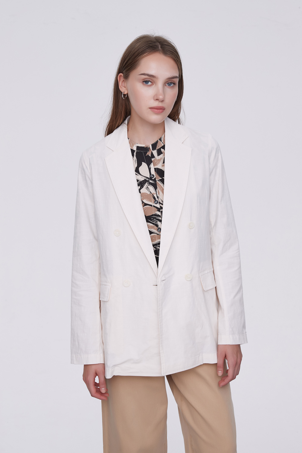 Blazer viscosa, pinzas, ancho, con botones y cuello solapa