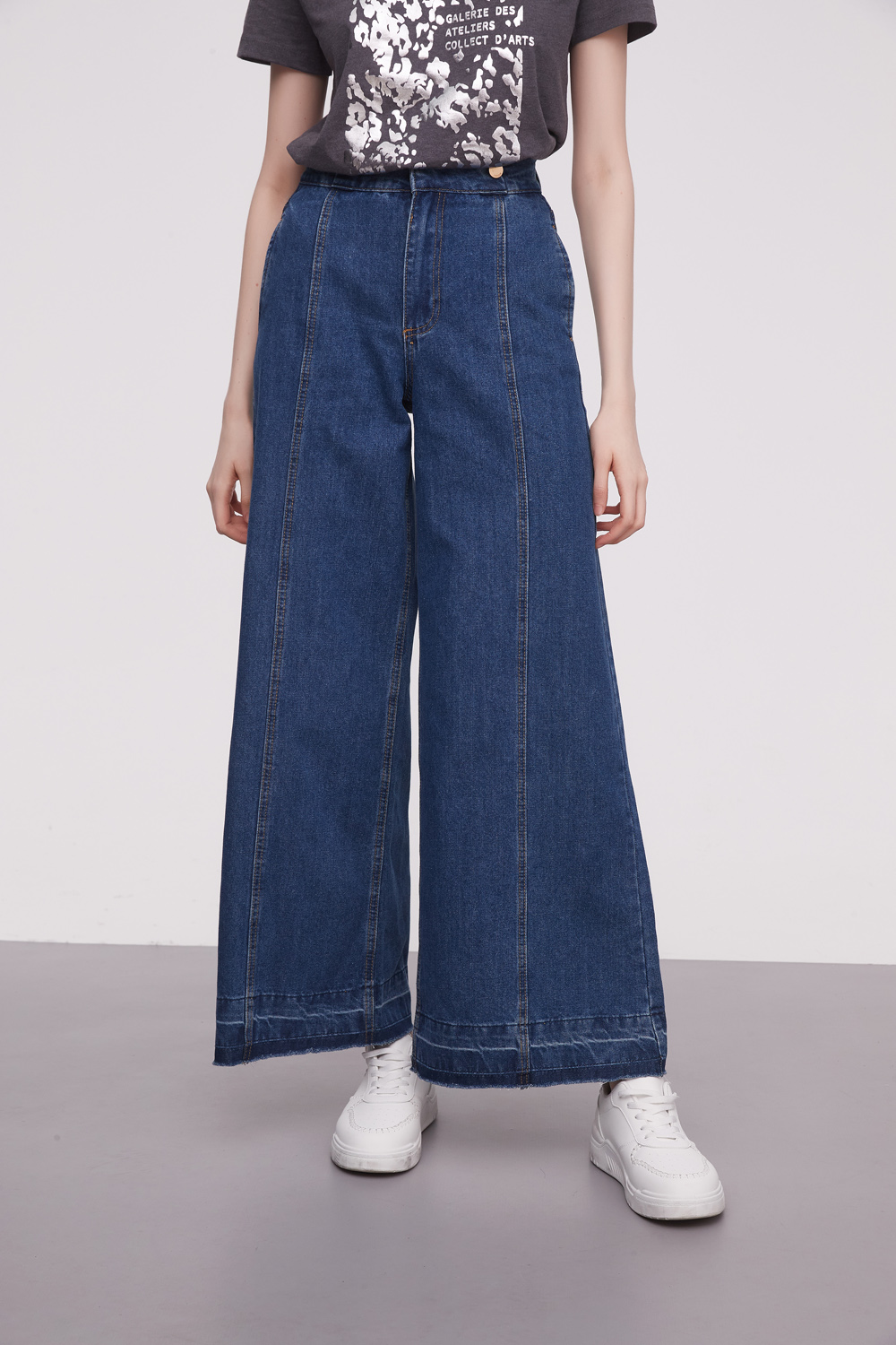 Pantalon jean, pespunte y de calce alto