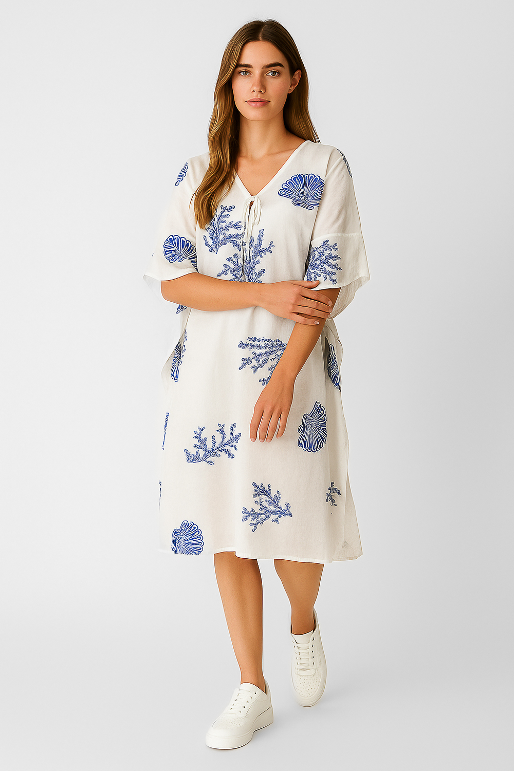 Tunica algodon, aop, holgado, con lace y cuello profundo