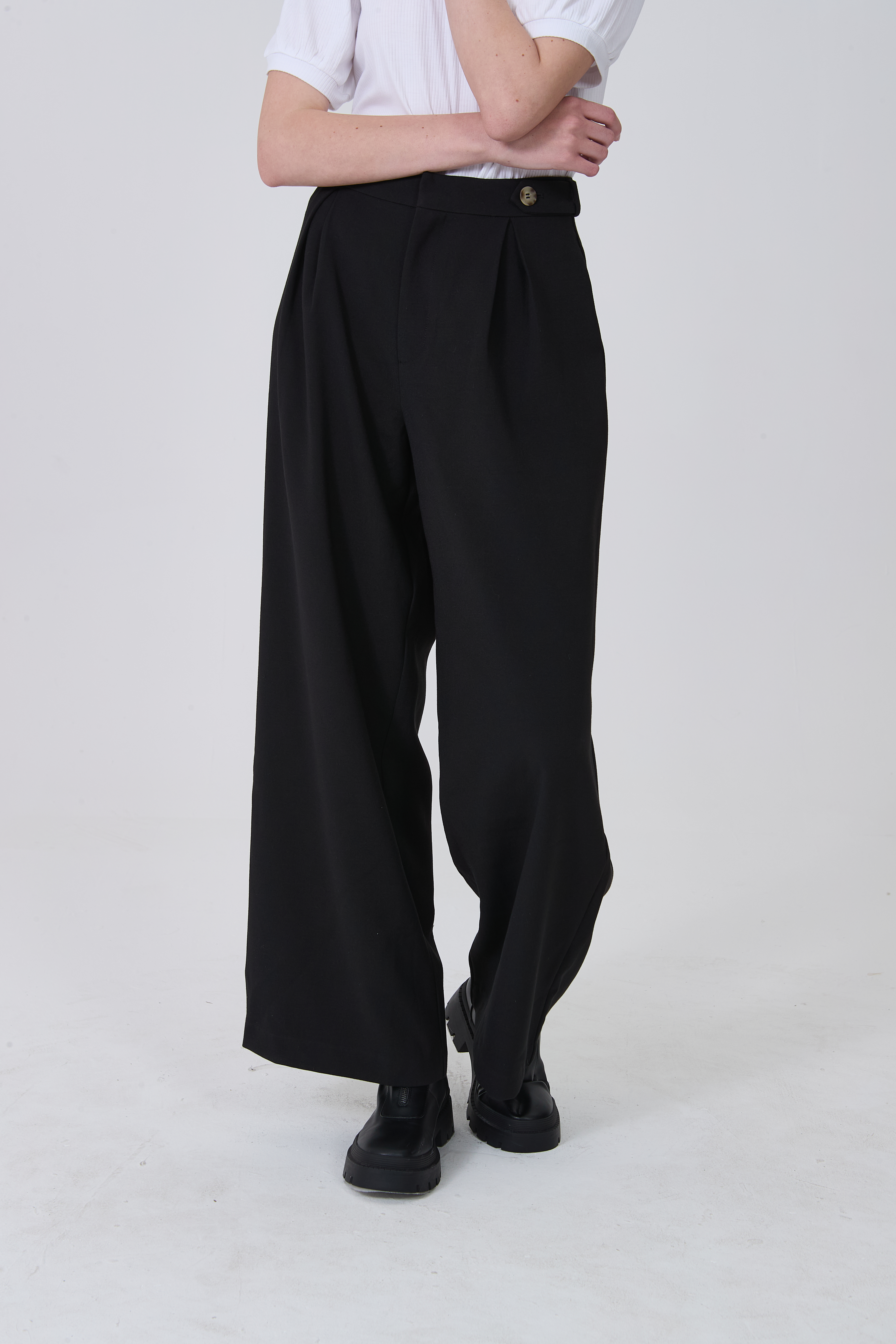 Pantalon poliester, pinzas, recto y de calce alto