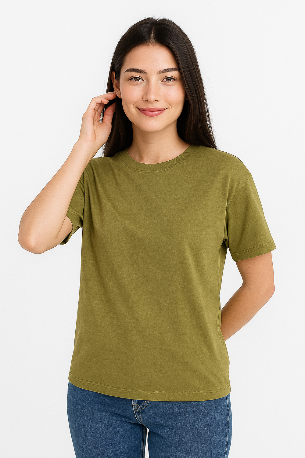 Remera manga corta de algodon, holgado y cuello a la base