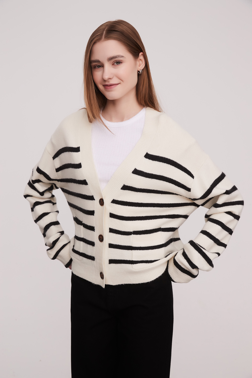 Cardigan acrilico, con bolsillo, holgado, con botones y cuello en v