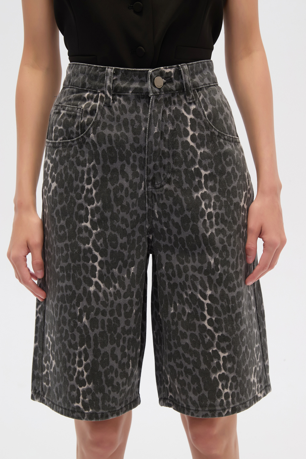 Bermuda jean, bolsillos, holgado y de calce alto