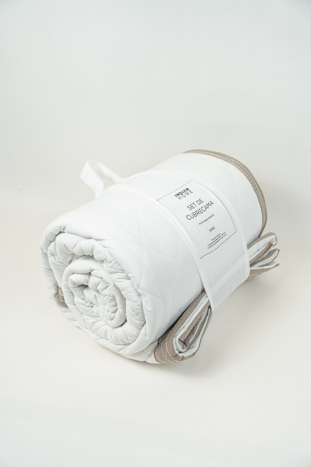 Set Cubrecama tacto suave en microfibra prelavada. Incluye cubrecama de 260x280cm y dos fundas de almohada de 50x90cm.