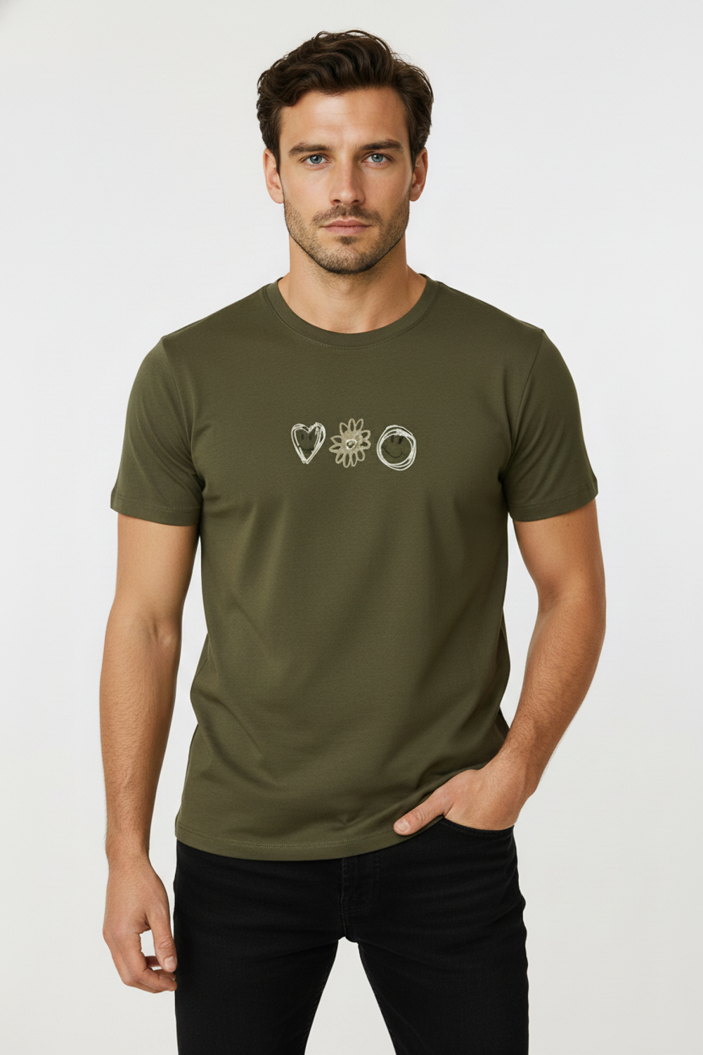 Remera manga corta de algodon, estampado, holgado y cuello a la base