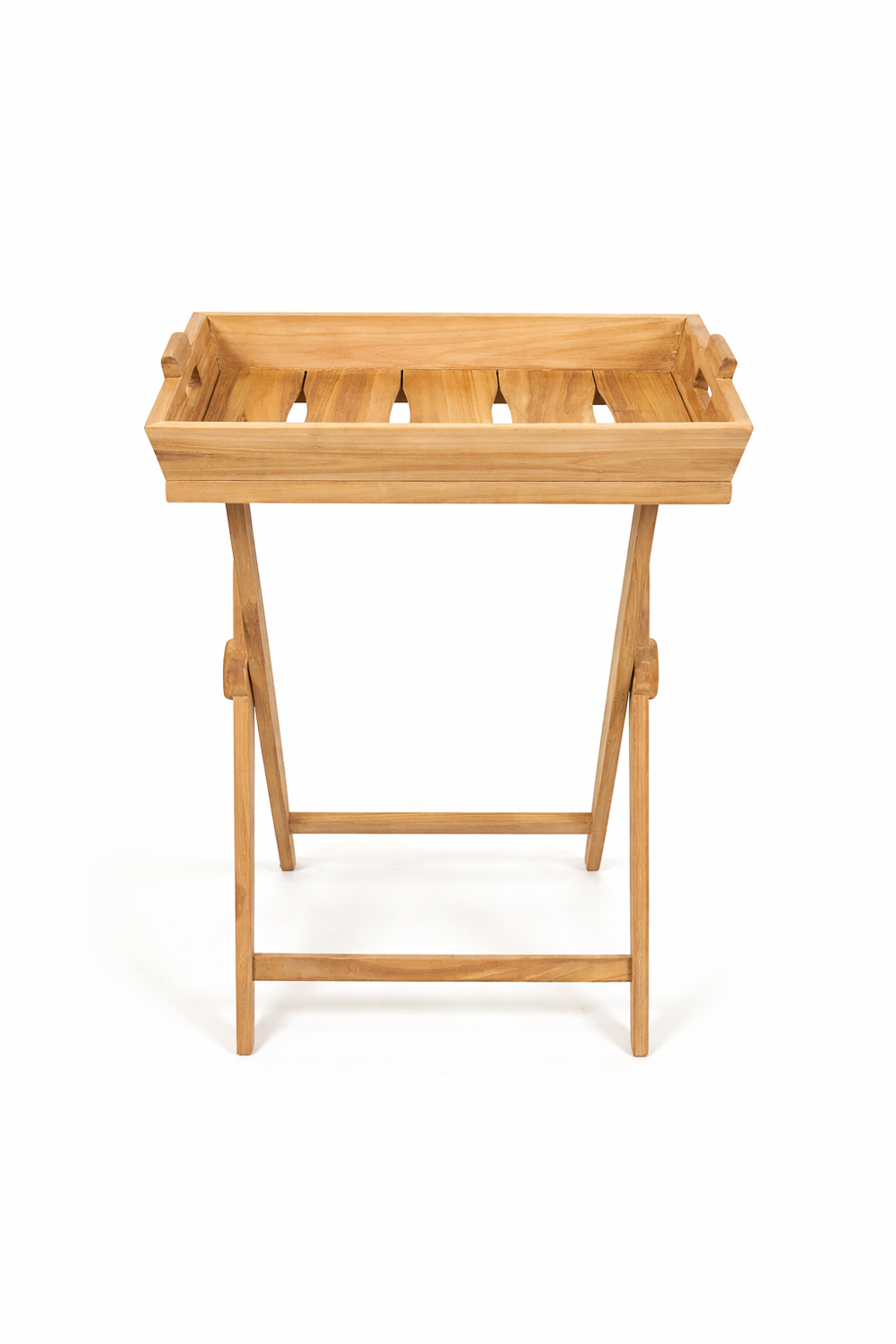 Mesa Lateral con Bandeja en madera TECA 100%. Medidas: 60x40x77.5 cm. Hecha a Mano
