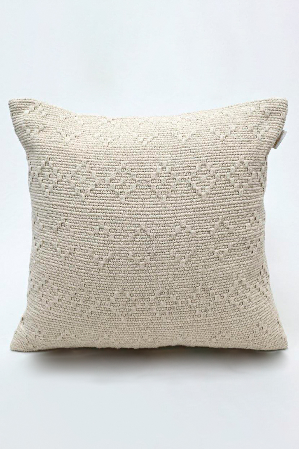 Funda de almohadón tejida a mano en Algodón 100% Relleno de almohadón en Poliéster 100% Medidas: 50x50
