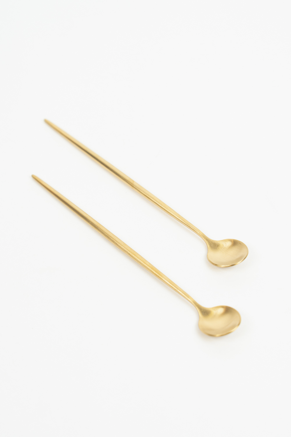 Set 2 un. Cucharita con mango largo,dorado mate de acero inoxidable