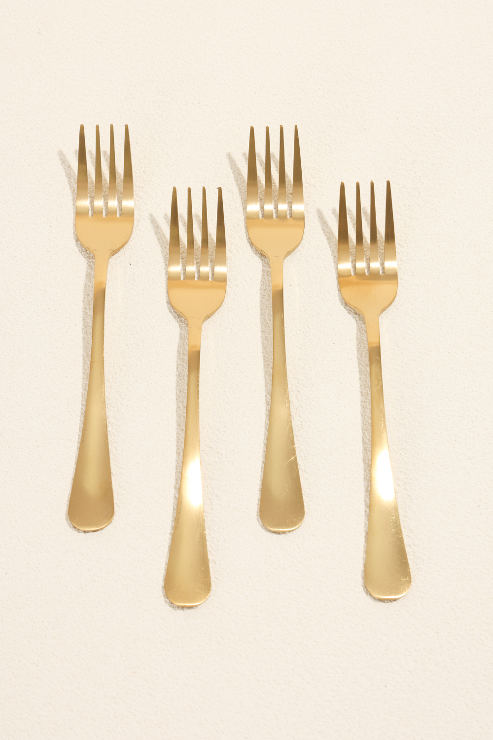 Set 4 un. Tenedor de Postre,dorado mate de acero inoxidable