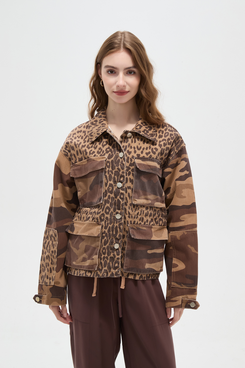 Campera manga larga de jean, bolsillos y estampado