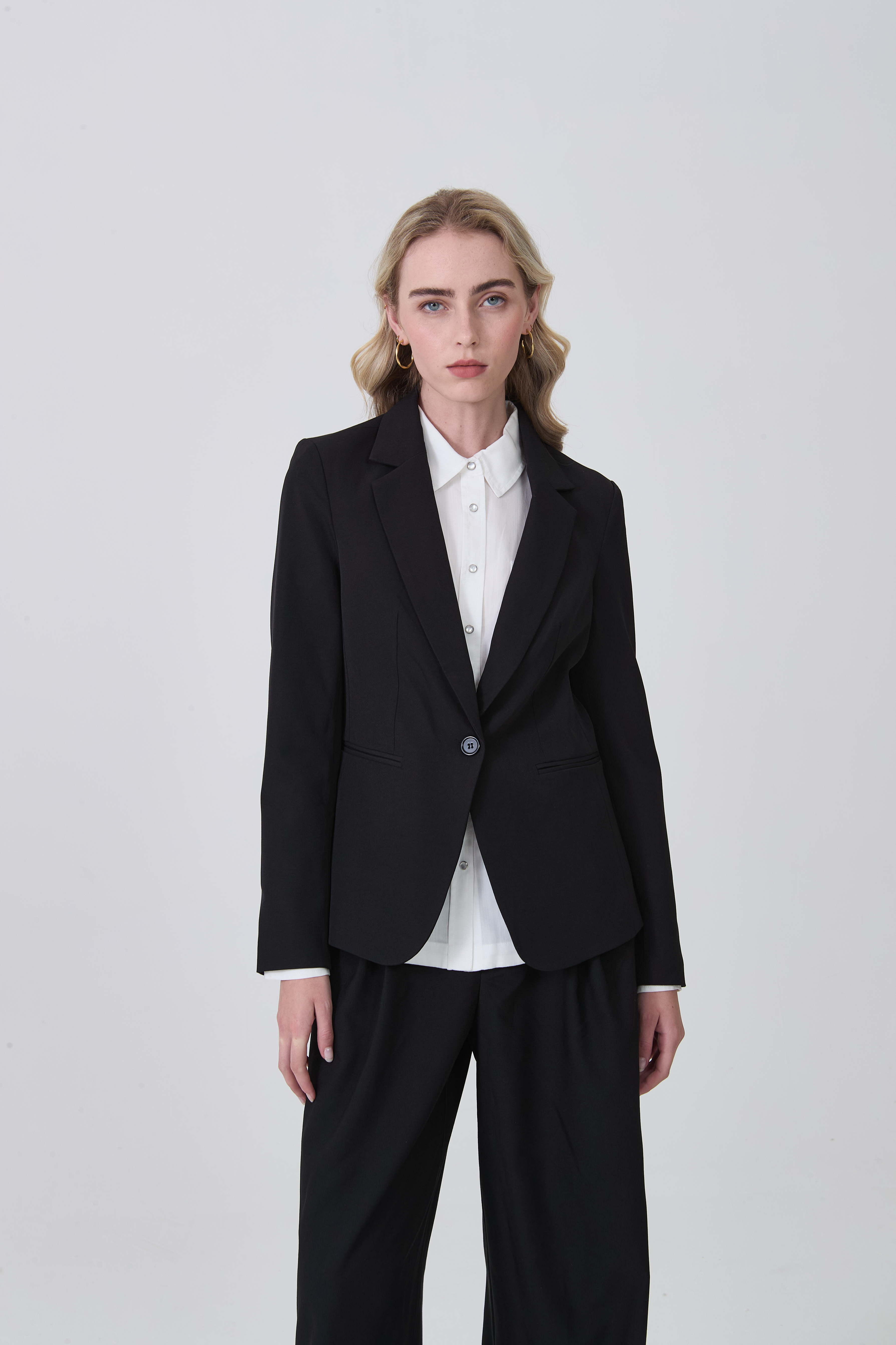 Blazer poliester, con bolsillo, entallado, con boton y cuello solapa