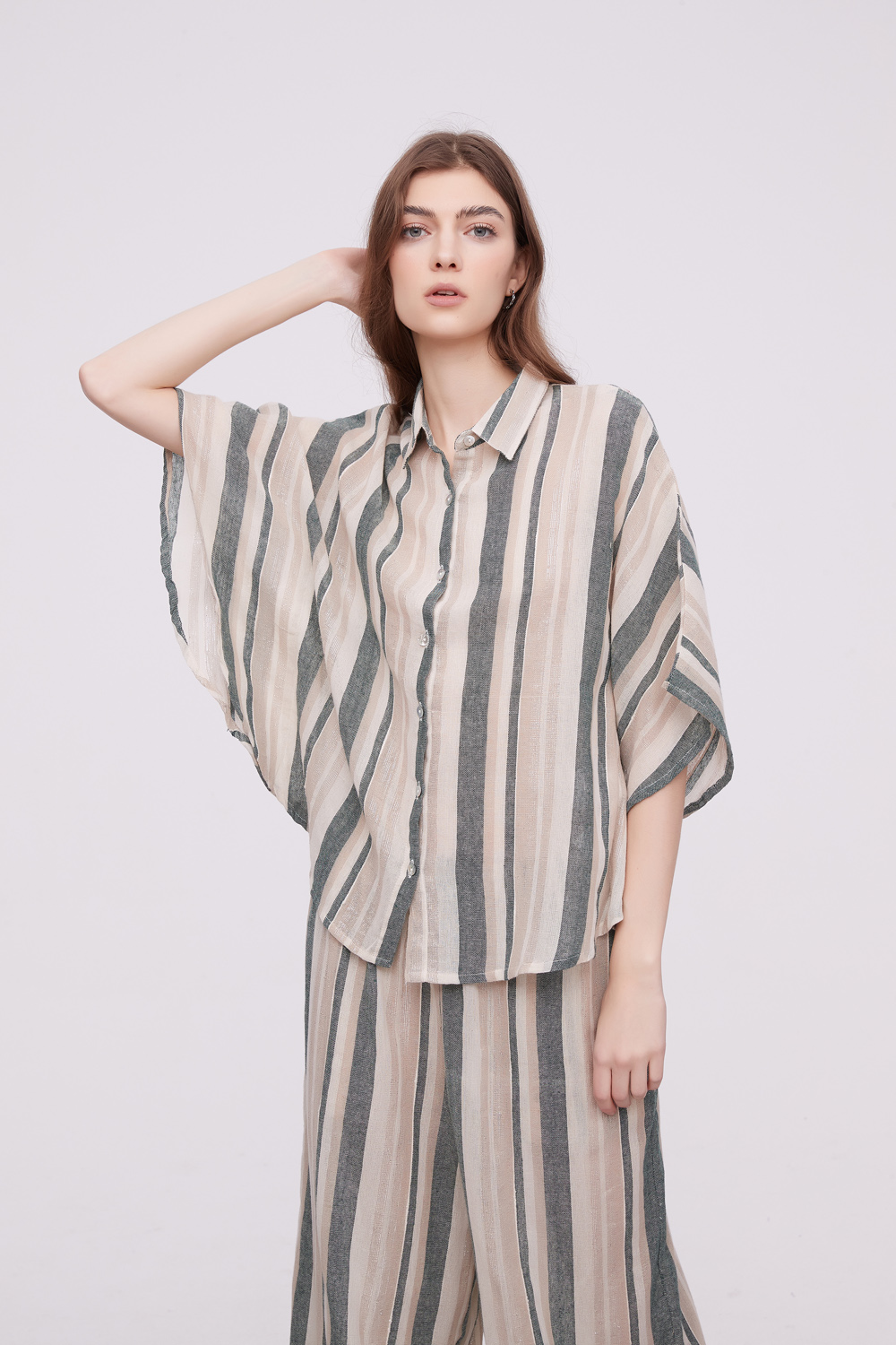 Camisa algodon, ancho, con botones, cuello camisa y aop