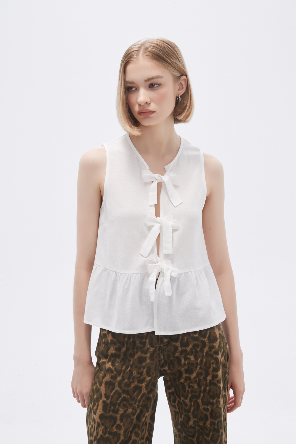 Blusa viscosa, con cordon y cuello a la base