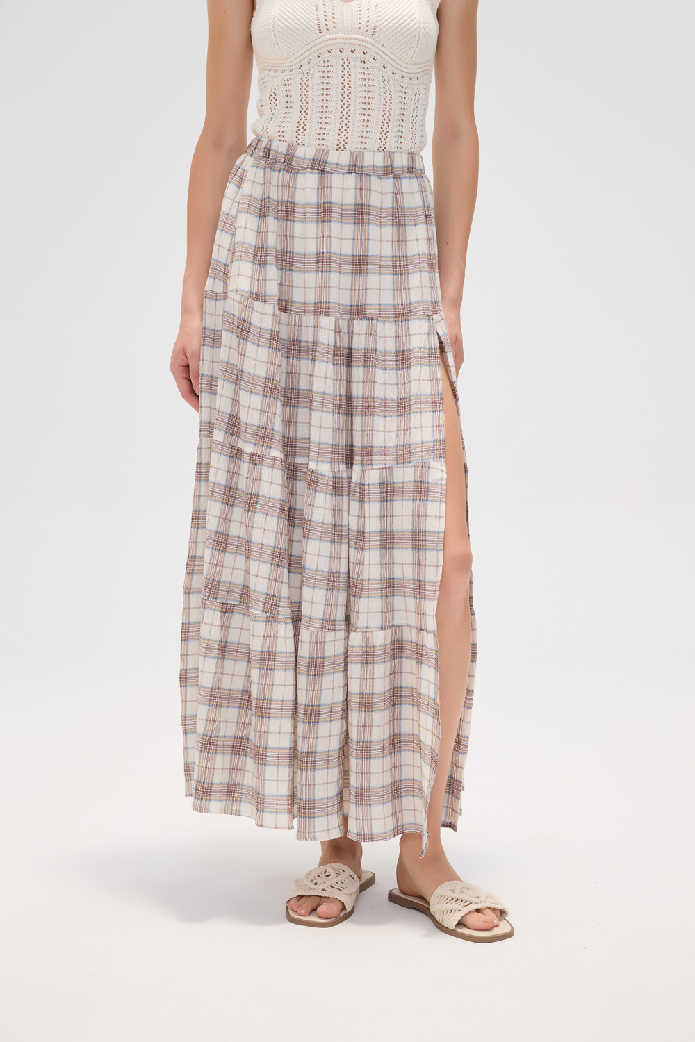 Falda largo de algodon, estampado y tajo