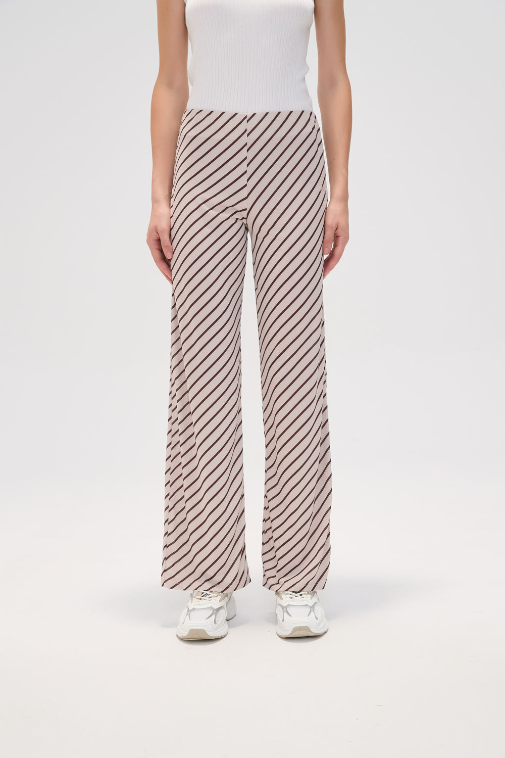 Pantalon poliester, estampado, rayas, recto y de calce medio