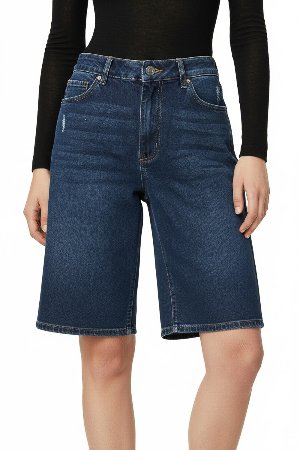 Bermuda jean, bolsillos y de calce alto