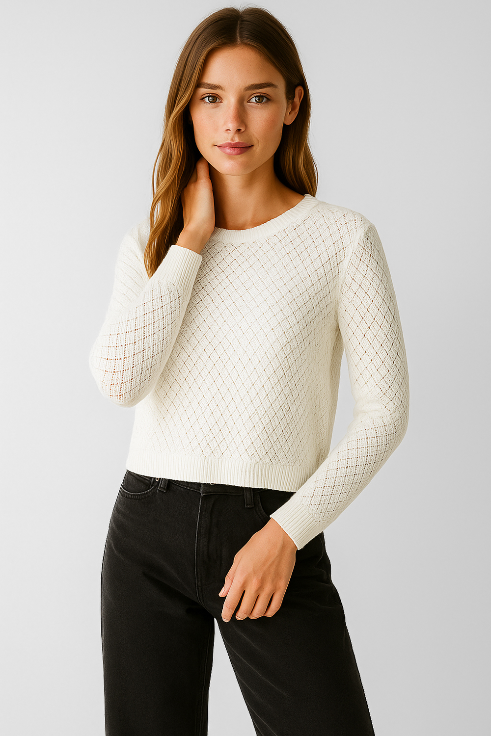 Sweater viscosa, calado, holgado y cuello bote