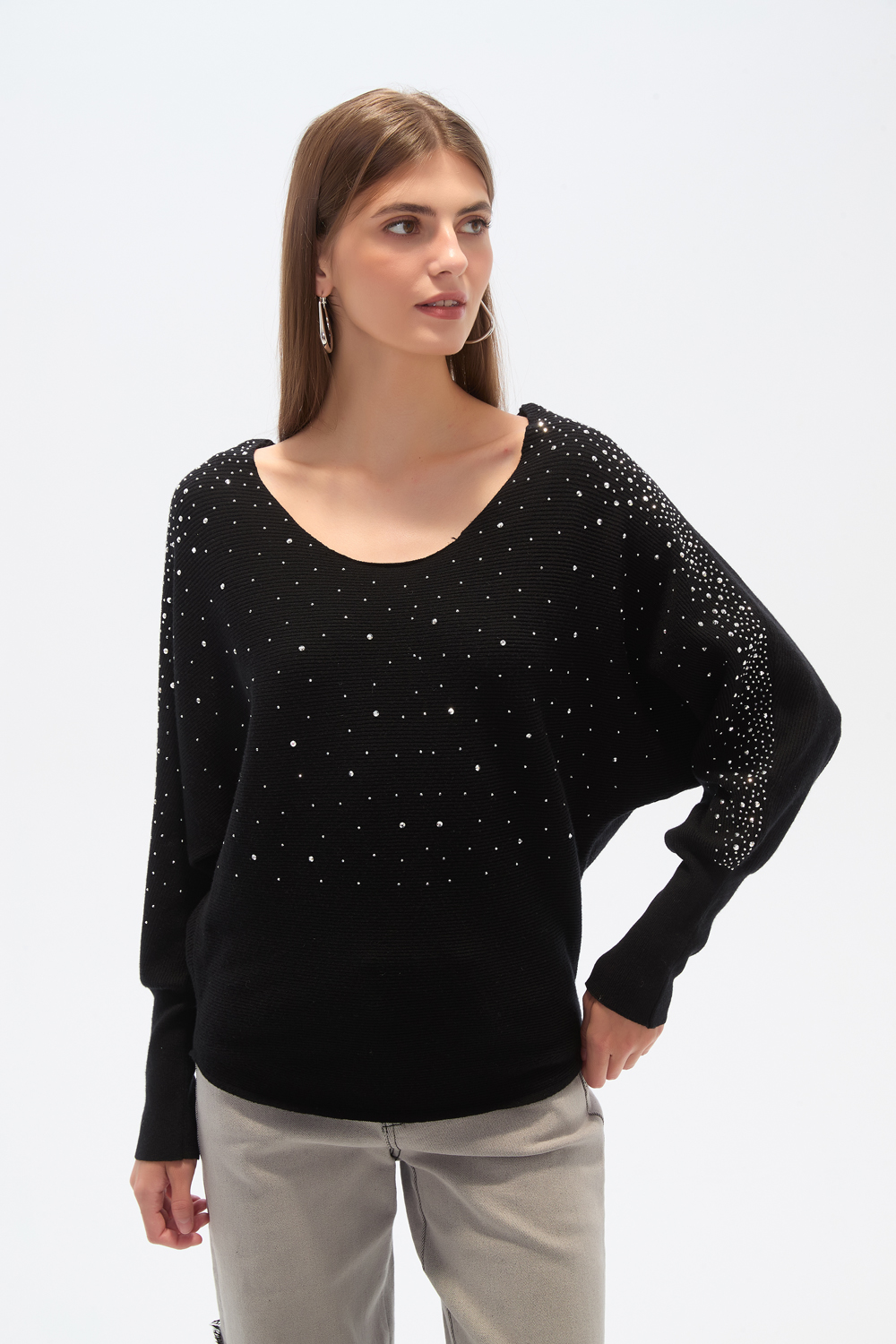 Sweater, holgado, con tachas y cuello bote