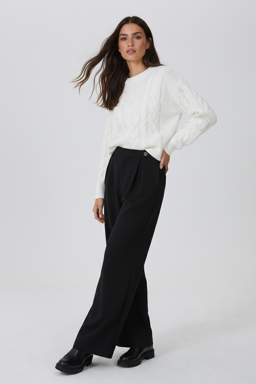 Sweater poliester, ochos, holgado y cuello a la base