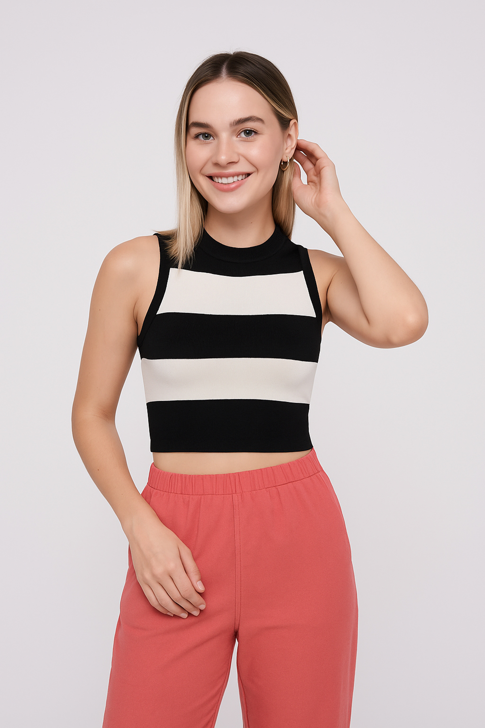 Tops sin mangas de viscosa, rayas y cuello a la base